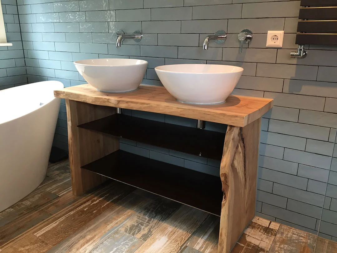 Het badkamermeubel is maatwerk. Deze hebben wij in onze eigen werkplaats vervaardigd van eikenhout en vervolgens in de badkamer geplaatst. Het resultaat is een unieke badkamer die weer helemaal voldoet aan de huidige eisen.